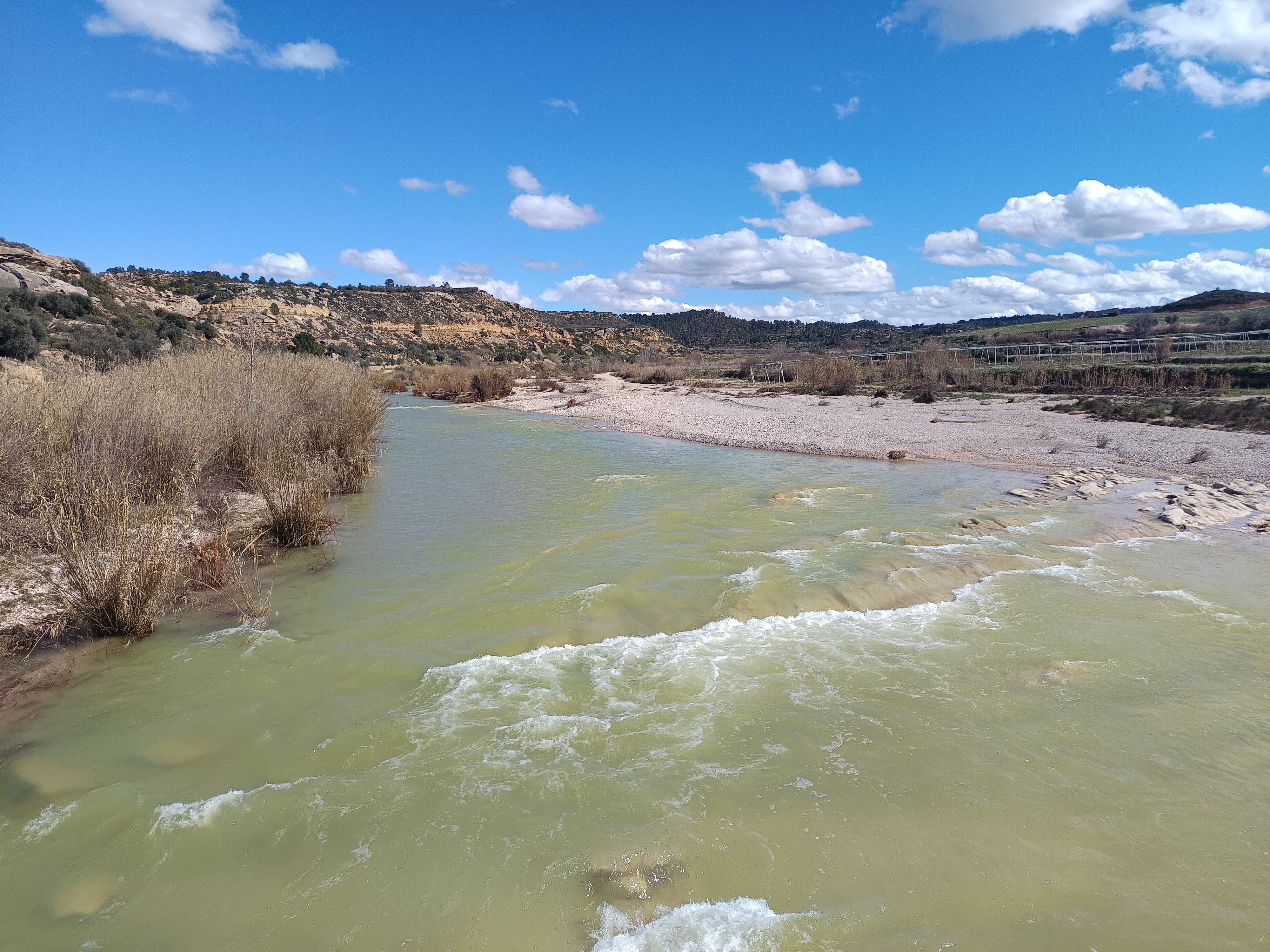 Después de un final de mes de Abril lluvioso (en la parte alta de la cuenca muy lluvioso), se produce un considerable aumento de caudal. En Mazaleón se acumulan 71 litros/m2 en cinco días. El agua del río es casi transparente