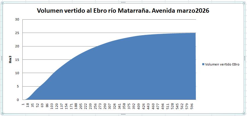 Gran riada del río Matarraña. Podemos decir que la más importante después de la famosa riada del año 2000. Se han producido 2 puntas de caudal, la segunda de más intensidad que la primera. Algo poco usual en esta cuenca. La punta de la crecida ha pasado por Mazaleón sobre las 13 horas del viernes 31 de octubre. El volumen acumulado del episodio también ha sido muy destacable, llegando a pasar por el aforo de Nonaspe más de 65 hm3. El embalse de Pena ha pasado de poco más del 20% hasta casi el 75%. Una muy buena noticia para los intereses de los agricultores de la parte baja de la comarca. A pesar de este aumento considerable de reserva, apenas se han podido retener el 20% de los caudales aportados al embalse de Ribarroja. El mal endémico de esta cuenca y de la mayoría de cuencas Mediterráneas que no tienen una buena regulación. Si analizamos la vencina cuenca del río Guadalope, el caudal vertido al embalse de Mequinenza ha sido "0". Los embalses existentes han podido laminar y almacenar prácticamente el 100% del agua vertida por el Bergantes y el Guadalope.