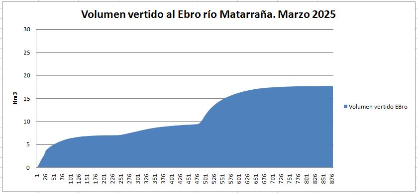 Comenzamos el mes de Marzo de 2025 con importantes precipitaciones, tanto en la parte alta de la cuenca como en la baja. Como consecuencia, se produce un importante incremento de los caudales del río ocasionando una avenida ordinaria. La punta de la crecida llega a Mazaleón la noche del día 4. A partir de ese momento los caudales comienzan a remitir hasta el día 9 de Marzo cuando se produce un repunte de caudal, llegando nuevamente a sobrepasar los 100 m3/seg. A partir de ese momento, el caudal se va reduciendo hasta alcanzar el caundal nominal para la época del año en que estamos. En total se han vertido al ebro aproximadamente 17 hm3, agua suficiente para llenar casi al 100% el único pantano que regula la cuenca. El agua que se ha podido retener ha sido mínima, aunque gracias al túnel del trasvase Matarraña-Pena (ya está en funcionamiento después de las obras de reparación) se ha conseguido aumentar el agua embalsada.