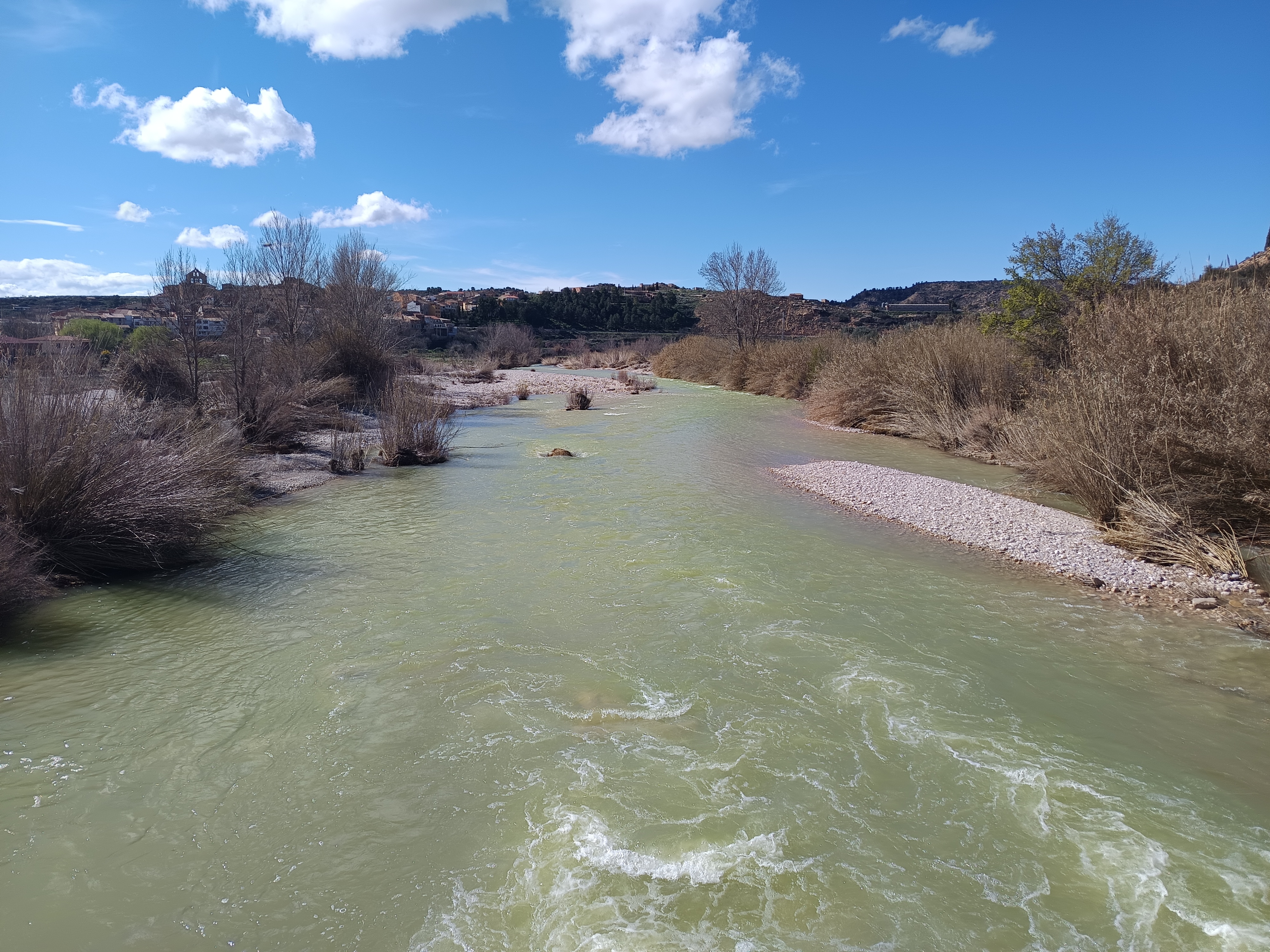 Después de un final de mes de Abril lluvioso (en la parte alta de la cuenca muy lluvioso), se produce un considerable aumento de caudal. En Mazaleón se acumulan 71 litros/m2 en cinco días. El agua del río es casi transparente